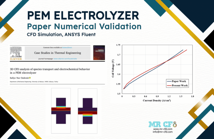 This product is provided according to the simulation of a reference article, “3D CFD analysis of species transport and electrochemical behavior in a PEM electrolyzer”. Then, the results of the present work are compared and validated with the reference article.