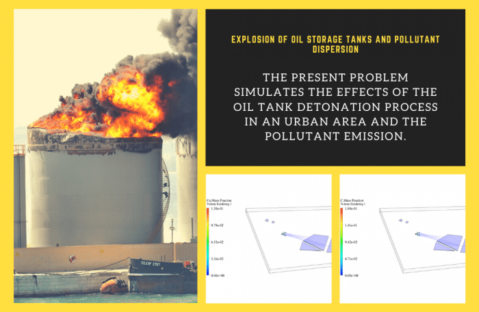 The 1st Practical Exercise simulates the effects of the oil tank detonation process in an urban area and the pollutant emission by ANSYS Fluent software. In fact, in areas where there are oil reservoirs, one of the potential dangers is an explosion. The explosion of these oil tanks can lead to the release of many pollutants such as carbon dioxide into the environment.