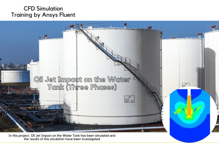 In the 4th Practical Exercise, numerical simulation of Oil Jet Impact on the Water Tank has been done using Ansys Fluent software. the system consists of three different fluids, including air as the primary fluid and one secondary fluid is liquid water, and the last is oil. The Eulerian multiphase model has been used.