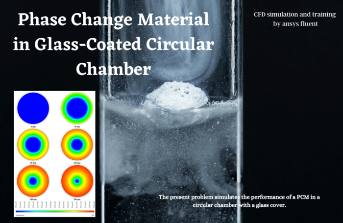- The problem numerically simulates Phase Change Material in Glass-Coated Circular Chamber using ANSYS Fluent software.