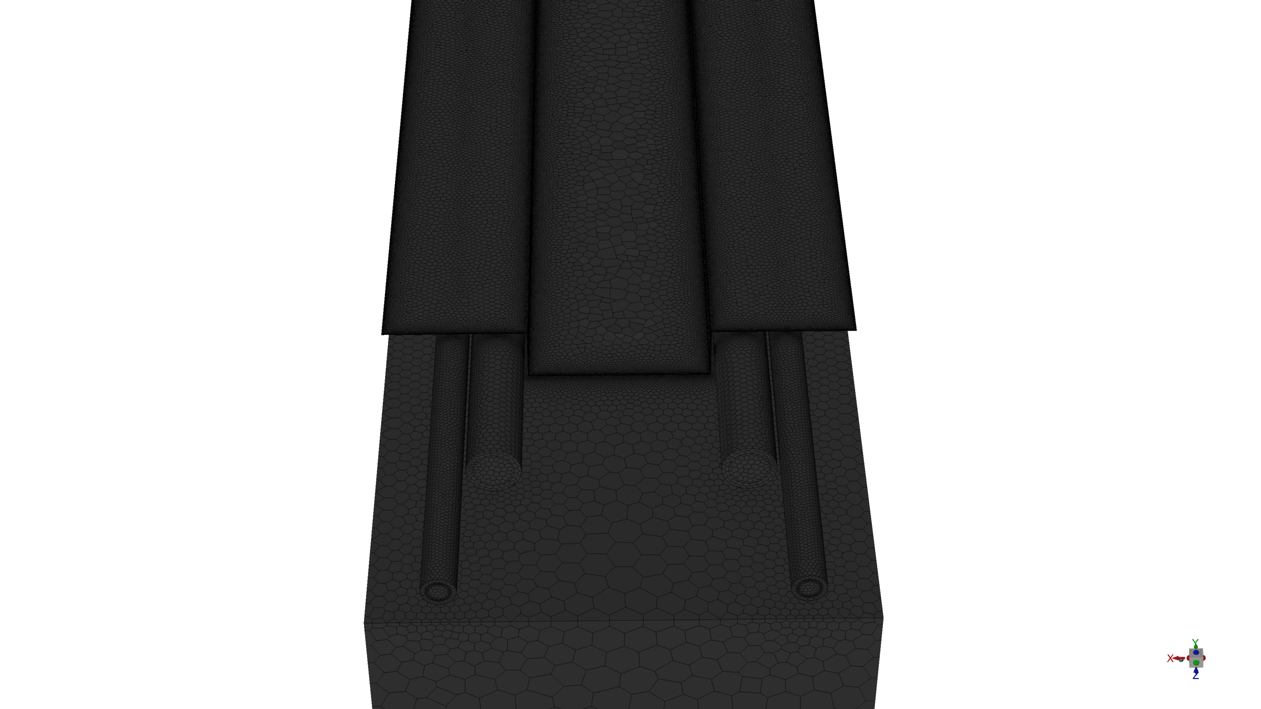 - The geometry, representing a U-shape pipe system with PCM-filled pipes, is designed in ANSYS SpaceClaim and meshed using ANSYS Meshing, resulting in 6,204,324 polyhedra elements.