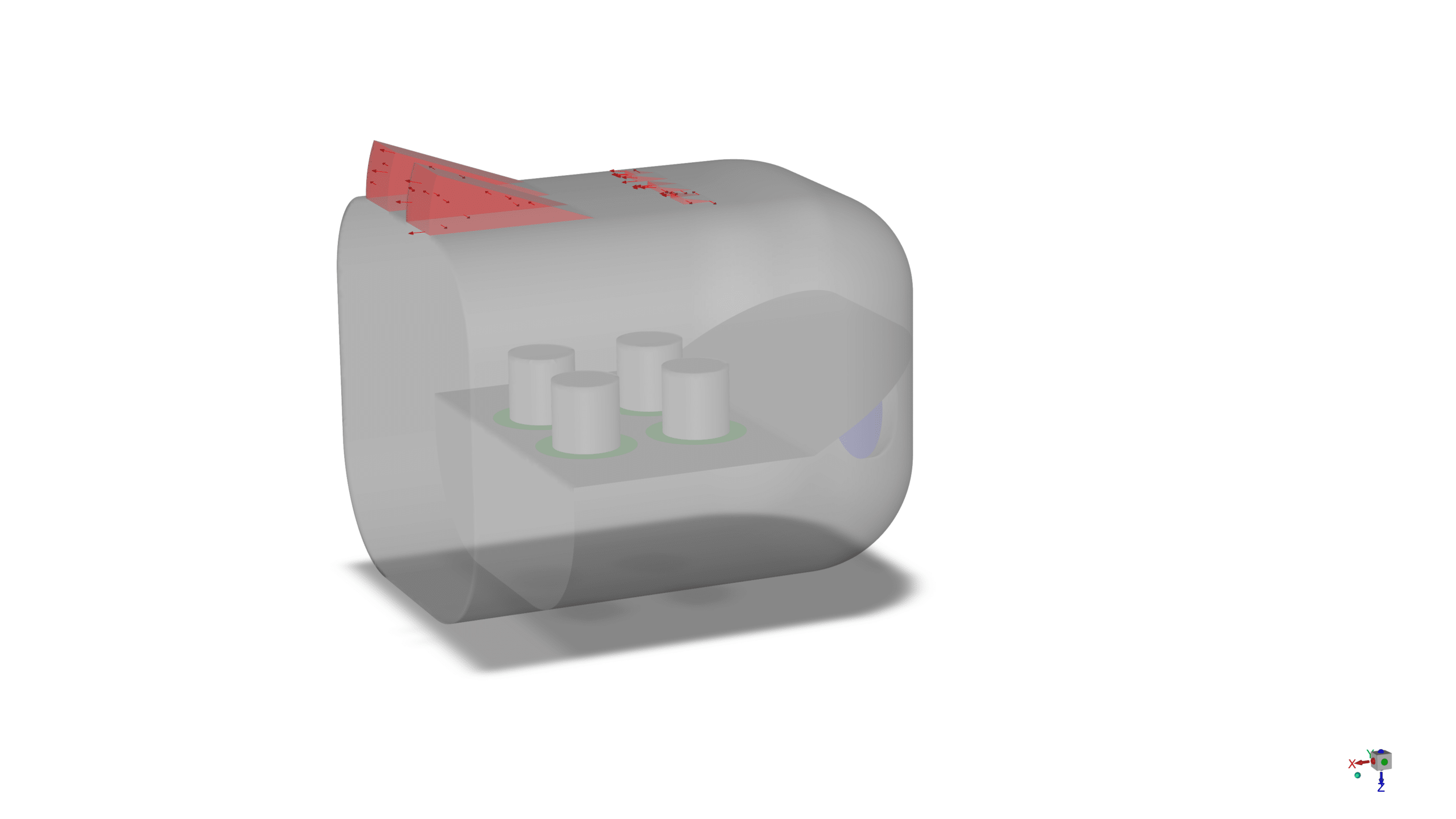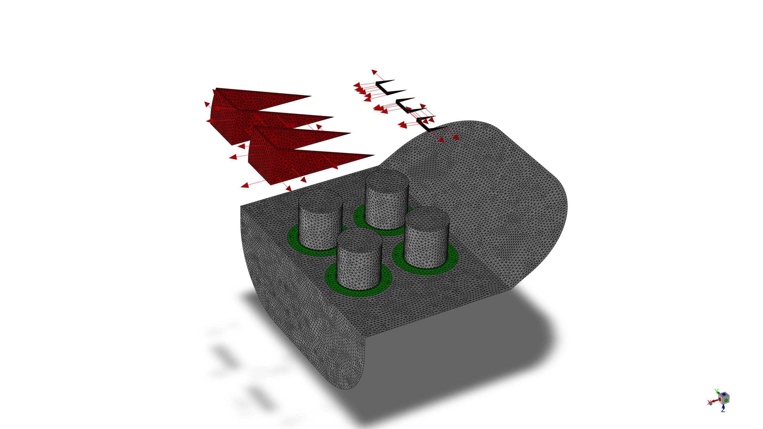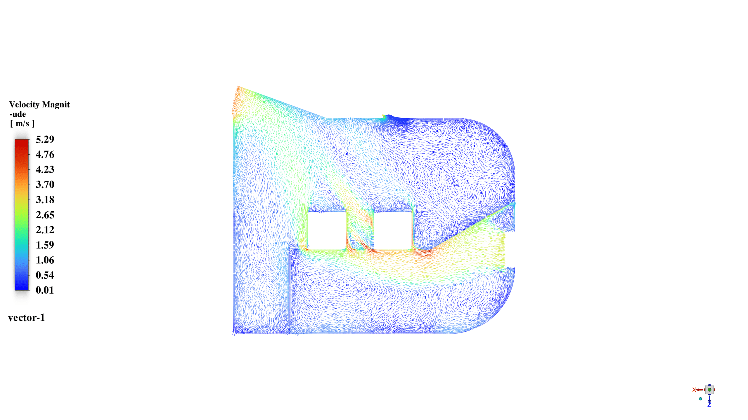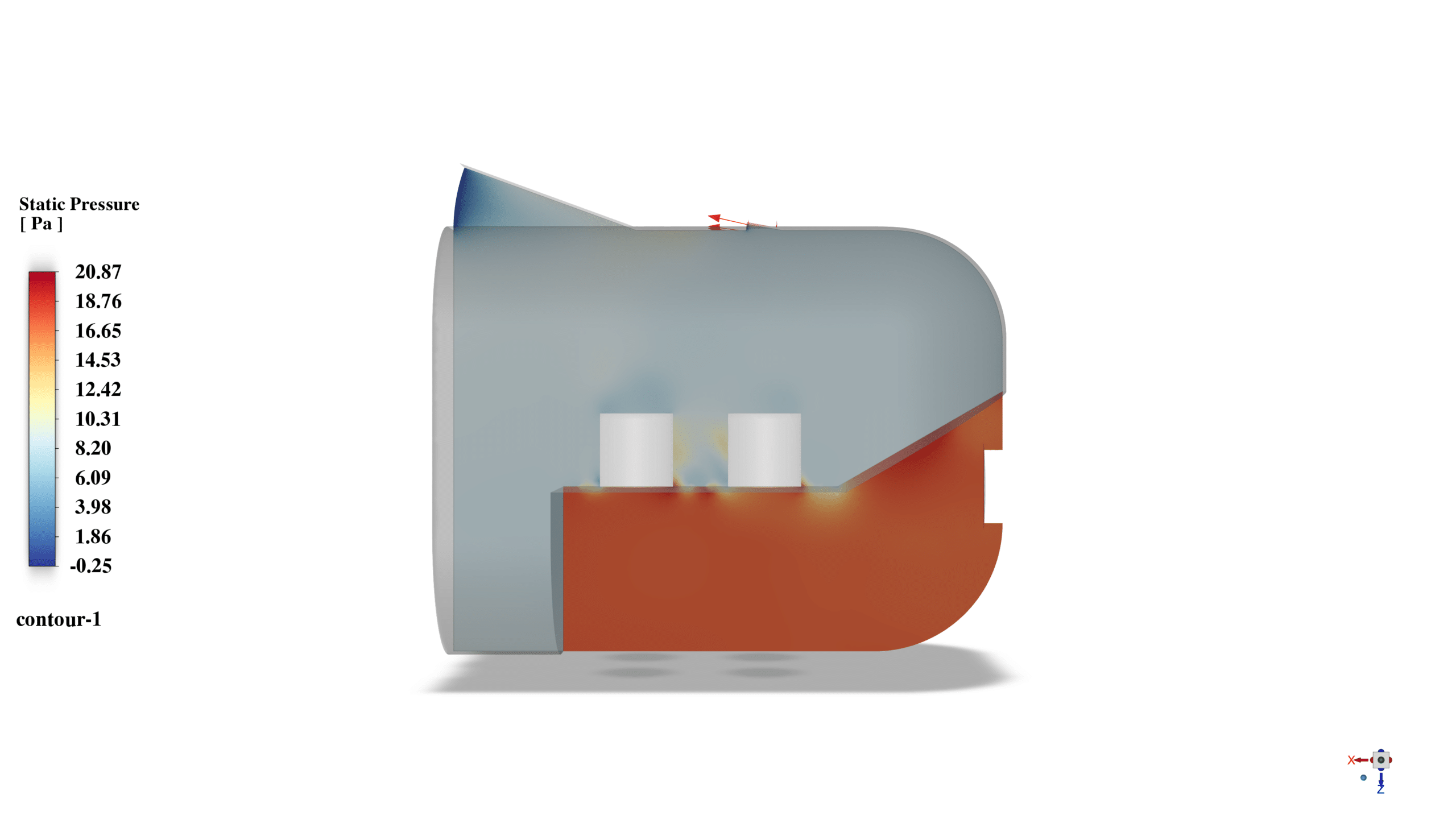 In conclusion, the CFD simulation successfully captured the thermal and fluid dynamics behavior of the pin-fin heat exchanger. The results demonstrate the device’s ability to transfer heat from the high-temperature pins to the working fluid, with complex flow patterns enhancing heat transfer efficiency. The study highlights the importance of pin arrangement, flow distribution, and outlet configuration in optimizing heat exchanger performance. Further studies could explore different pin geometries, arrangements, or working fluids to enhance thermal management capabilities.