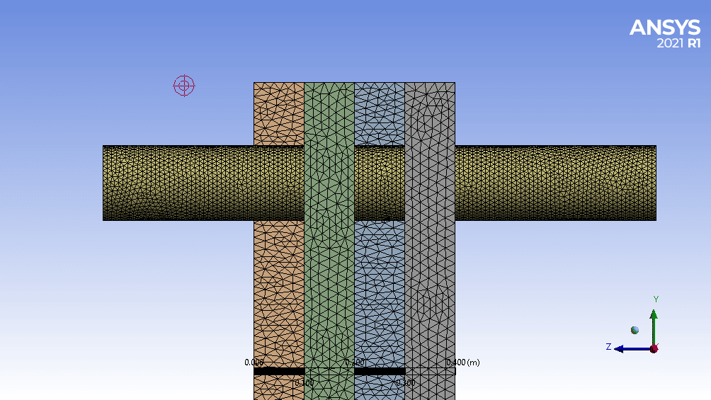 The pressure-based solver has been employed due to the incompressibility of the fluid. Also, the simulation is independent of Time, so it has performed in steady state form. Moreover, the gravitational effects are ignored. There is convection between water and pipes and conduction in the solids, transferring heat all over the domain. So, Conjugated Heat Transfer (CHT) was studied.