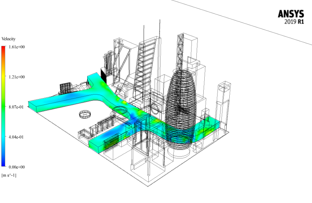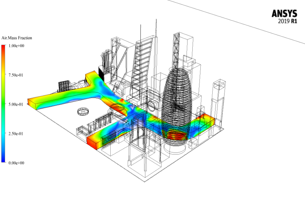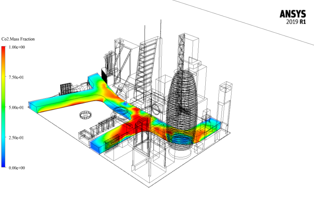 - The problem simulates a mass fraction of carbon dioxide changes as the pollutant in an urban street by ANSYS Fluent software.