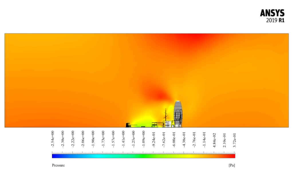 At the end of the solution process, two-dimensional contours of pressure, temperature, velocity, air and CO2 mass fraction were obtained in the whole model environment. These two-dimensional contours are drawn in XY and YZ sections. Also, the three-dimensional contours related to pressure, temperature, velocity, air and CO2 mass fraction have been obtained in the area of the CO2 source term.