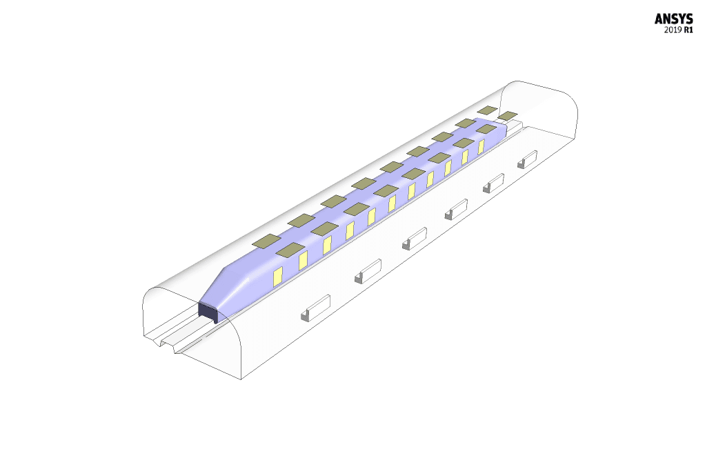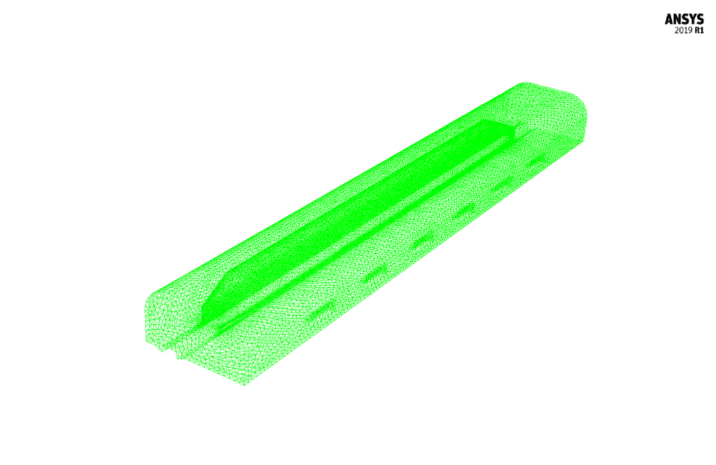 The geometry of the present model is drawn by Design Modeler software. The geometry of this model is related to a subway station that includes a subway line with rails.