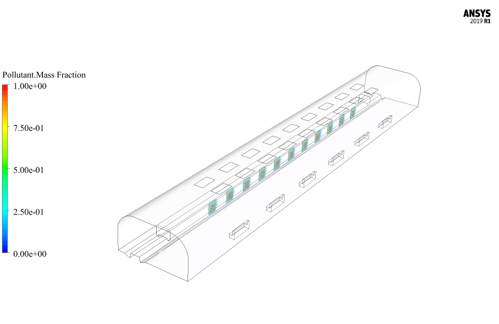 This simulation is about pollution in the subway via ANSYS Fluent software.