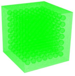The present model is three-dimensional and is drawn using the ِ Design Modeler software. The present model is related to the chamber, which has seven spheres as a porous medium in three different directions. The total number of these spheres is 343. The figure below shows a view of the geometry.