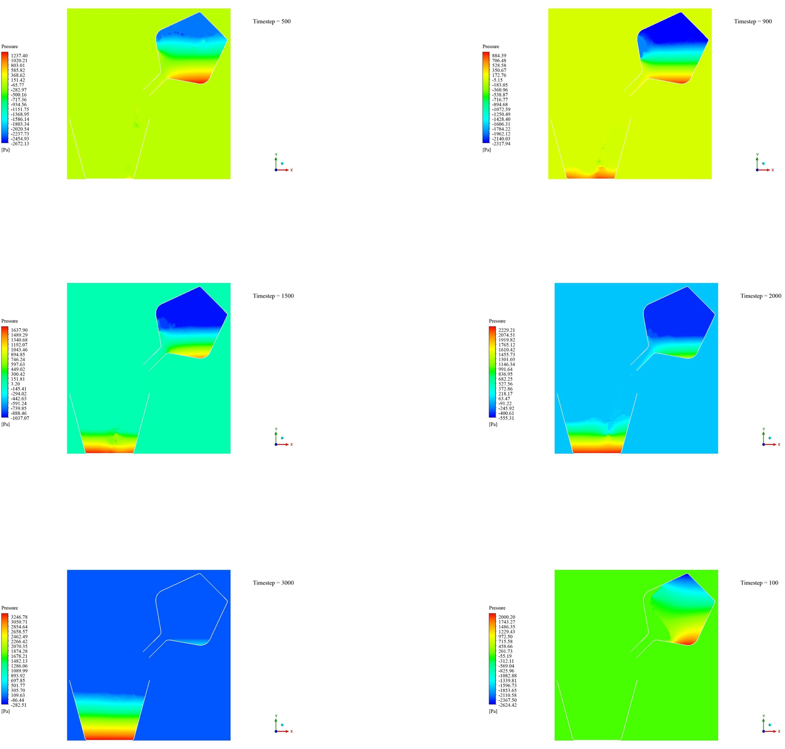 The K-epsilon Standard viscous model with Standard wall function has been used to solve the turbulent flow equations. The pressure-velocity coupling scheme is SIMPLE. The second-order upwind discretization method has been used for Momentum, Turbulent kinetic energy, and Turbulent dissipation rate.