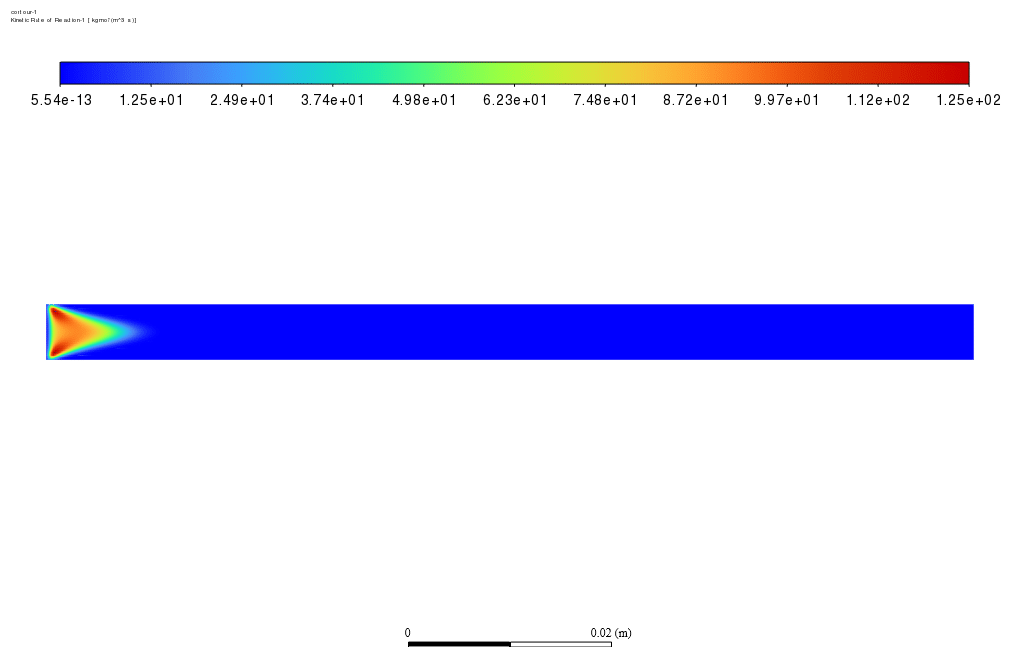Also, the Finite rate/No TCI model accounts for the turbulence chemistry interactions. This submodel takes the effect of detailed kinetic mechanisms into account and neglects the effect of mixing on combustion.