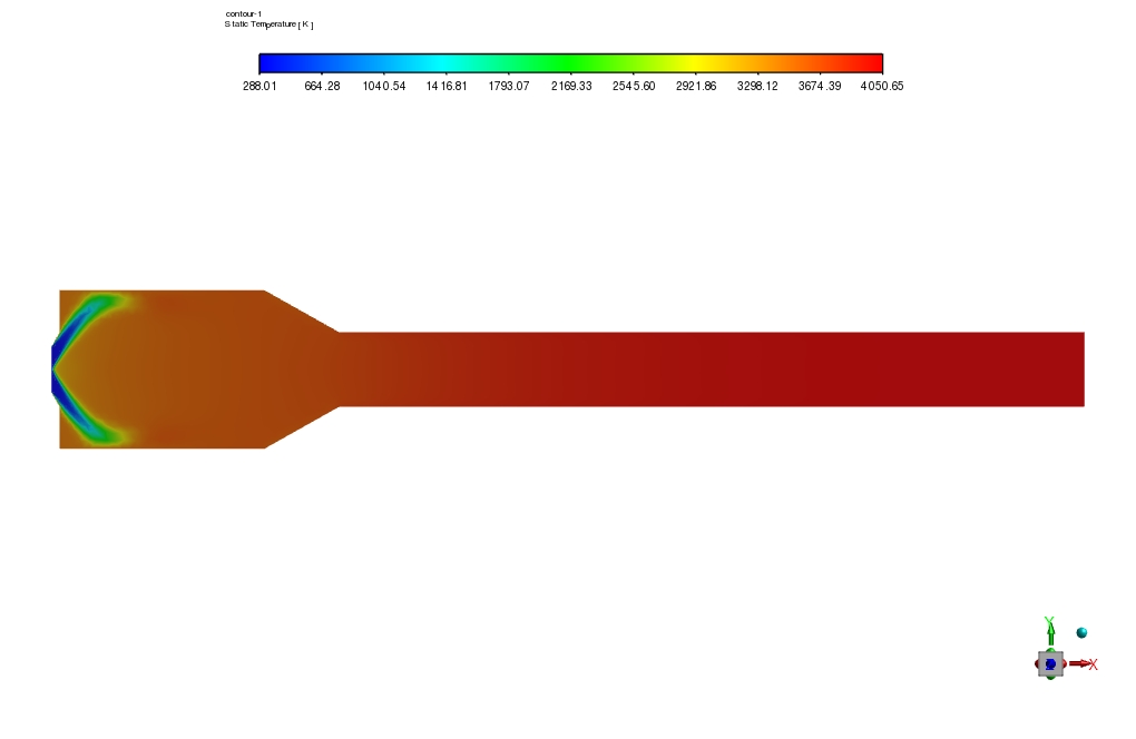 In this project, the mixture’s static temperature has a maximum value of 3500 k within the chamber. Methane and air enter the domain from inlets, in which methane is injected into the domain using only one inlet.