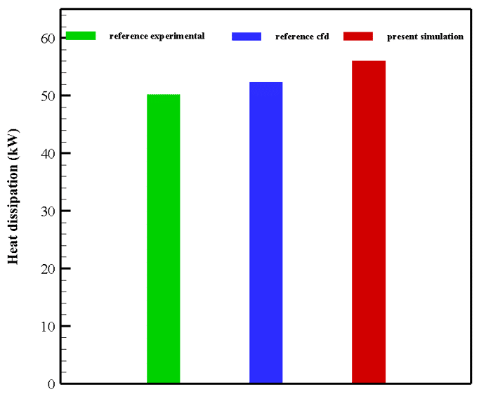 Also, the current CFD simulation results are compared and validated with the results of the reference paper. This radiator has three fans for transmitting airflow in the horizontal direction. This radiator consists of several rows of fins and aluminum plates that increase the heat transfer rate.
