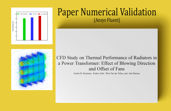 The present problem concerns heat transfer and airflow simulation around a radiator. The present simulation is based on the reference article “CFD Study on Thermal Performance of Radiators in a Power Transformer: Effect of Blowing Direction and Offset of Fans” using ANSYS Fluent software.