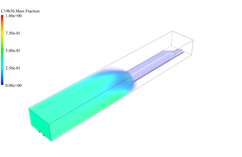 For this simulation, We defined a combustion process using the species model. This combustion occurs between a fuel (diesel) and an oxidizer (air). We used the species transport model to define the chemical reaction of combustion. Then, we define this reaction between reactants and products in volume mode.
