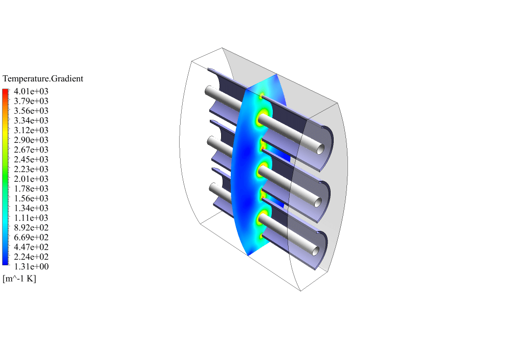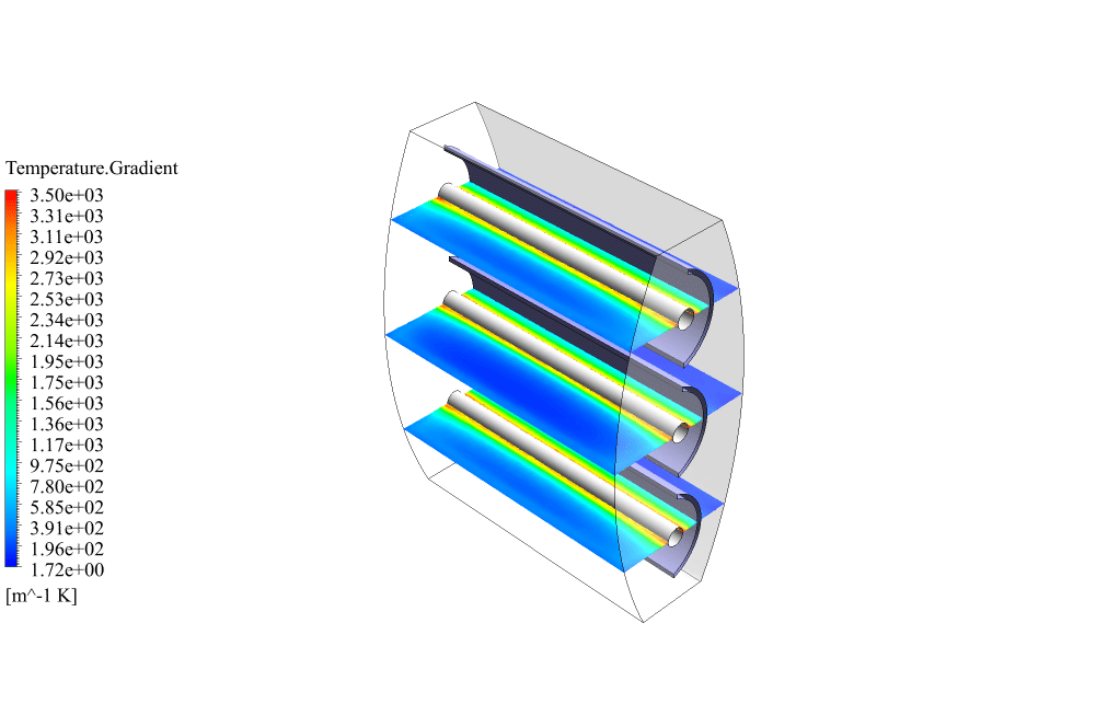 After conclusion, we have obtained the contours related to the temperature and the temperature gradient inside the space radiant heater. these contours correctly show the heat transfer inside the radiative heater.