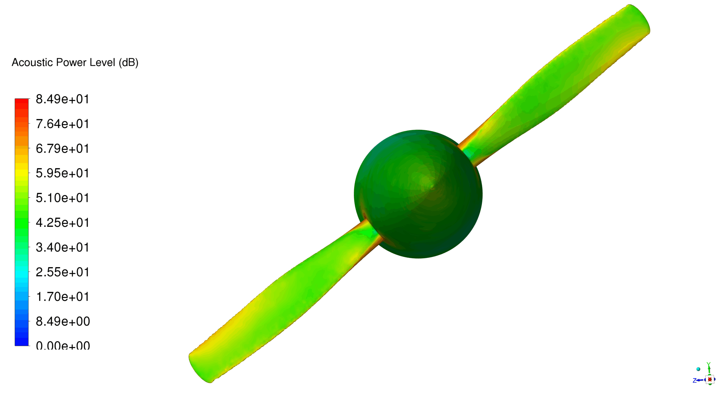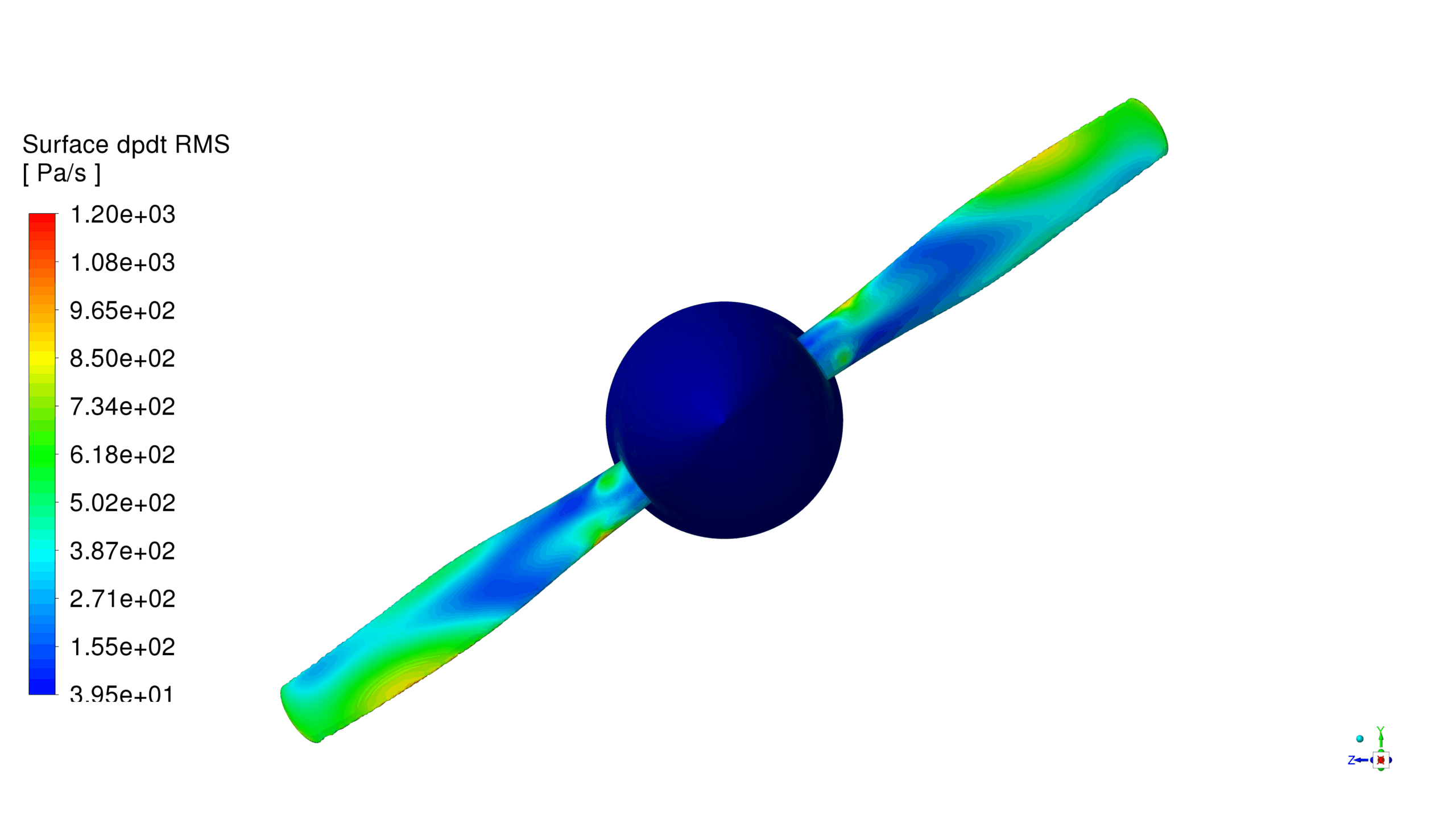 - Acoustic Pressure vs Time: This pressure is actually the acoustic signal calculated from the Ffowcs–Williams–Hawkes (FW–H) equation, which is due to the fluctuations in the flow around the propellers.