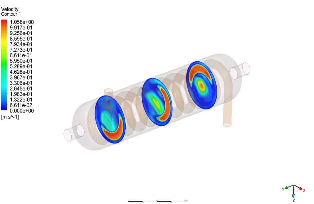 The system consists of two fluids, oil, and water (Water flows in the shell and oil in the tube). Using Ansys Fluent software, the impurity distribution was observed. The software’s different erosion models help correctly predict the erosion effect in other cases according to different working conditions.
