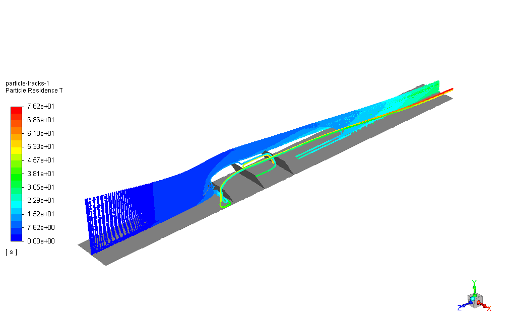 At the end of the solution process, two-dimensional contours related to water pressure and velocity and three-dimensional contours related to water pressure and velocity, and a particle sequence based on the residence time and particle diameter are obtained.