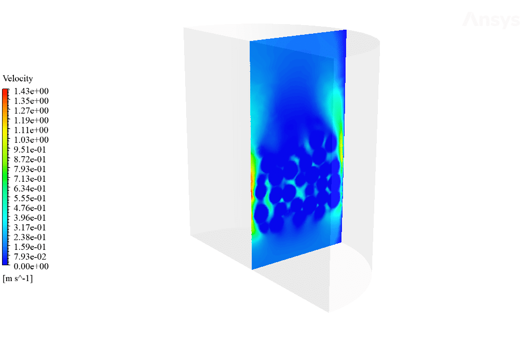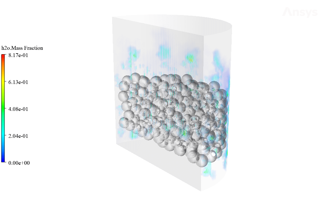 The movement of this stream of hot air can carry moisture inside the seeds. Note that, it is not evaporating! It is just a moisture transmission from the seeds region to the surroundings. Therefore, we can call that a hydraulic mechanism of drying. By the way, if you are interested in dying via the evaporation mechanism, you can check the “Grain Drying Device” or “Rice Dryer” projects in which the grains are modeled using the Discrete Phase Model module and evaporation is taken into account.