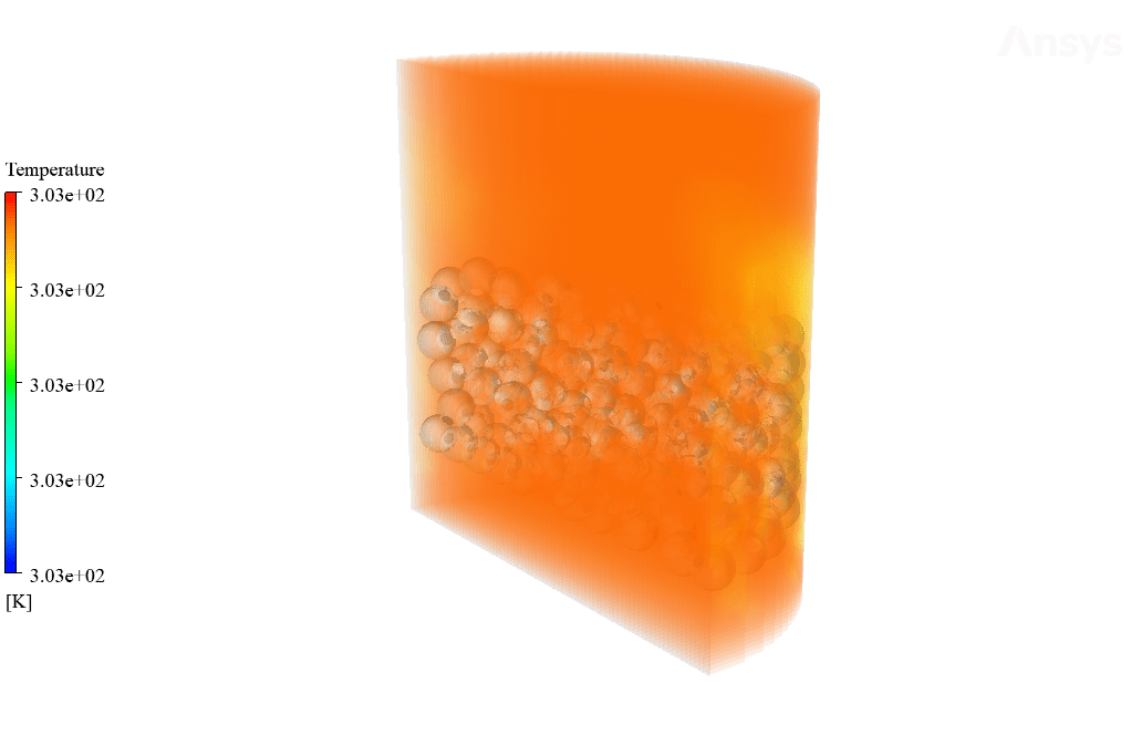 The present geometry is designed in a 3D model via Design Modeler. The computational zone of the interior is a semi-cylindrical chamber in the middle of which a set of spherical shapes are designed as seeds.