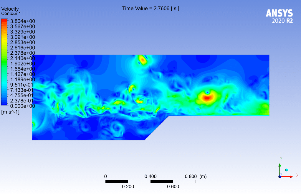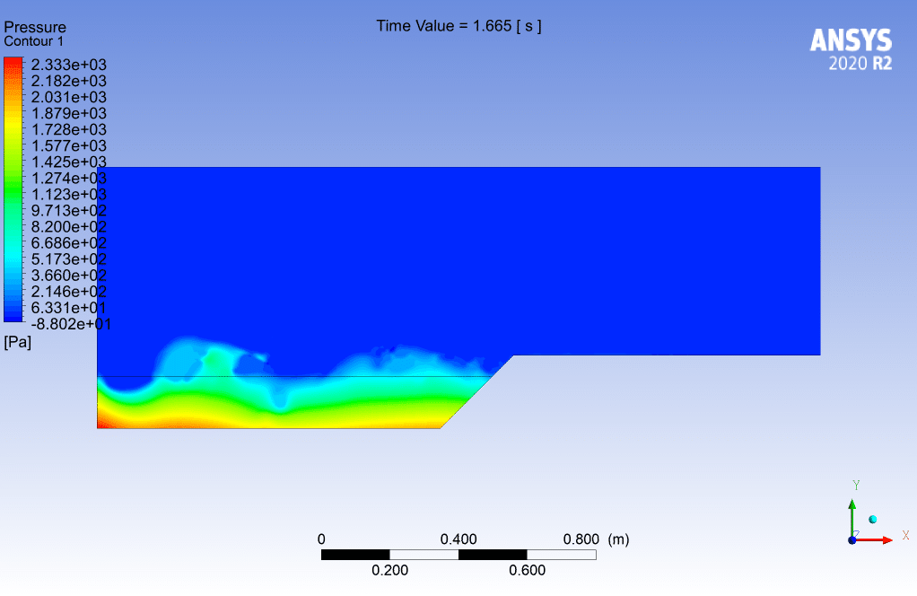 The two-dimensional geometry of this project has been produced with SpaceClaim software. The length of the computational area is 210 cm and its height is 76 cm.