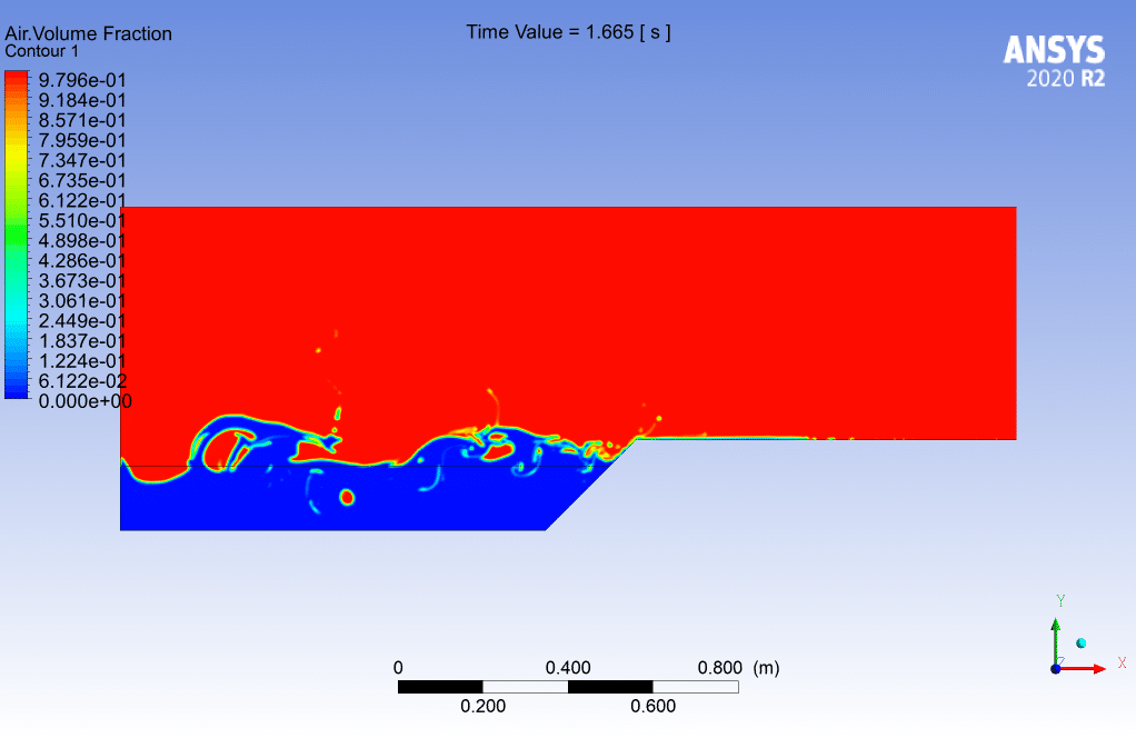 In Fluent software, it is possible to send waves from the input boundary condition into the domain. According to the speed counters, it is clear that when the waves move at sea level, vortices are created in the surrounding air and it can be said that the intensity of air turbulence is proportional. It is the height of the waves, which is why we see strong winds when we stand by the sea of waves.