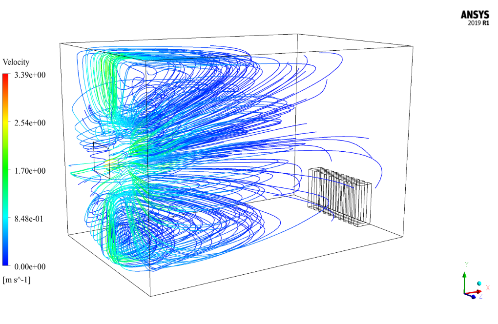 I’m delighted with how the product shows efficient heat transfer analysis in a realistic setting. The aluminum radiator heat output and the meticulous setup of single-sided ventilation reflect the quality and assets of ANSYS Fluent simulation capabilities.