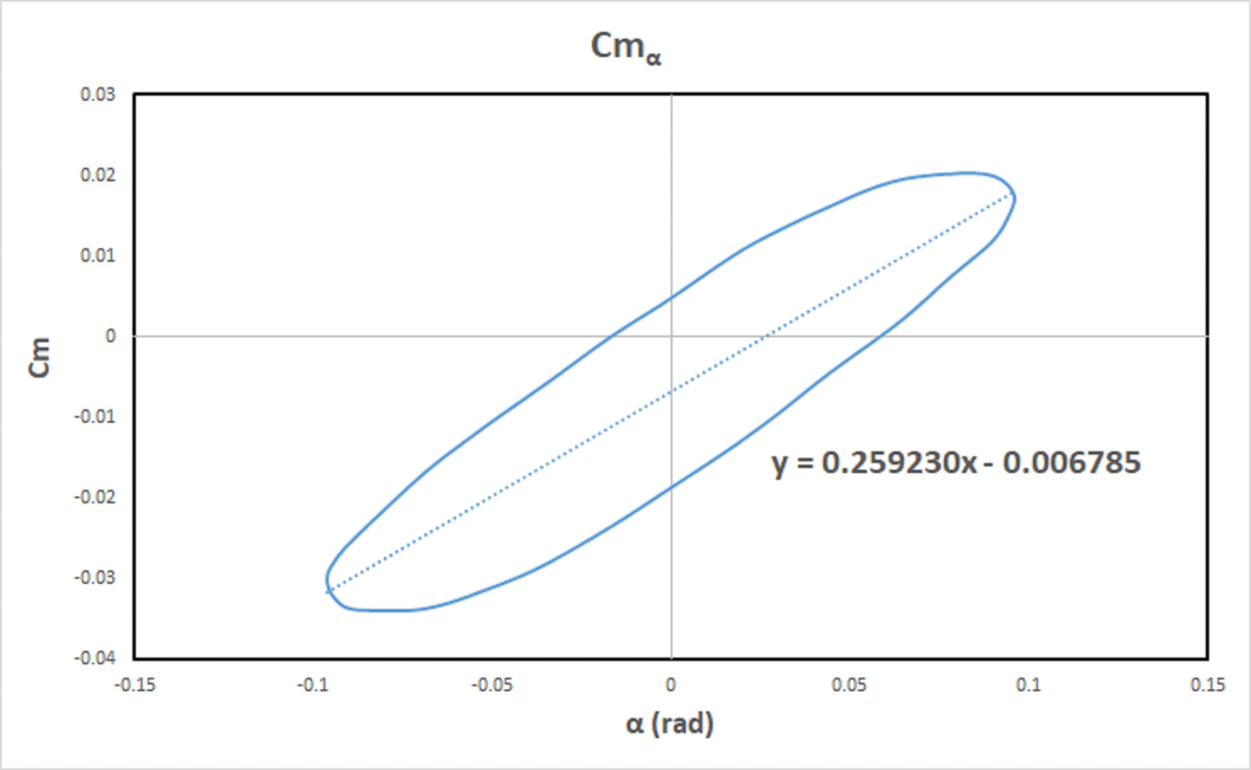 The most commonly used and important coefficients in the discussion of stability have been extracted after simulation and are given in the table below. Using these coefficients, it is possible to comment on whether a drone is stable or not in terms of static and dynamic. Also, using the extracted data, hysteresis diagrams have been drawn, which can be understood by considering the shape and direction of rotation of these rings, whether the drone is stable or not.
