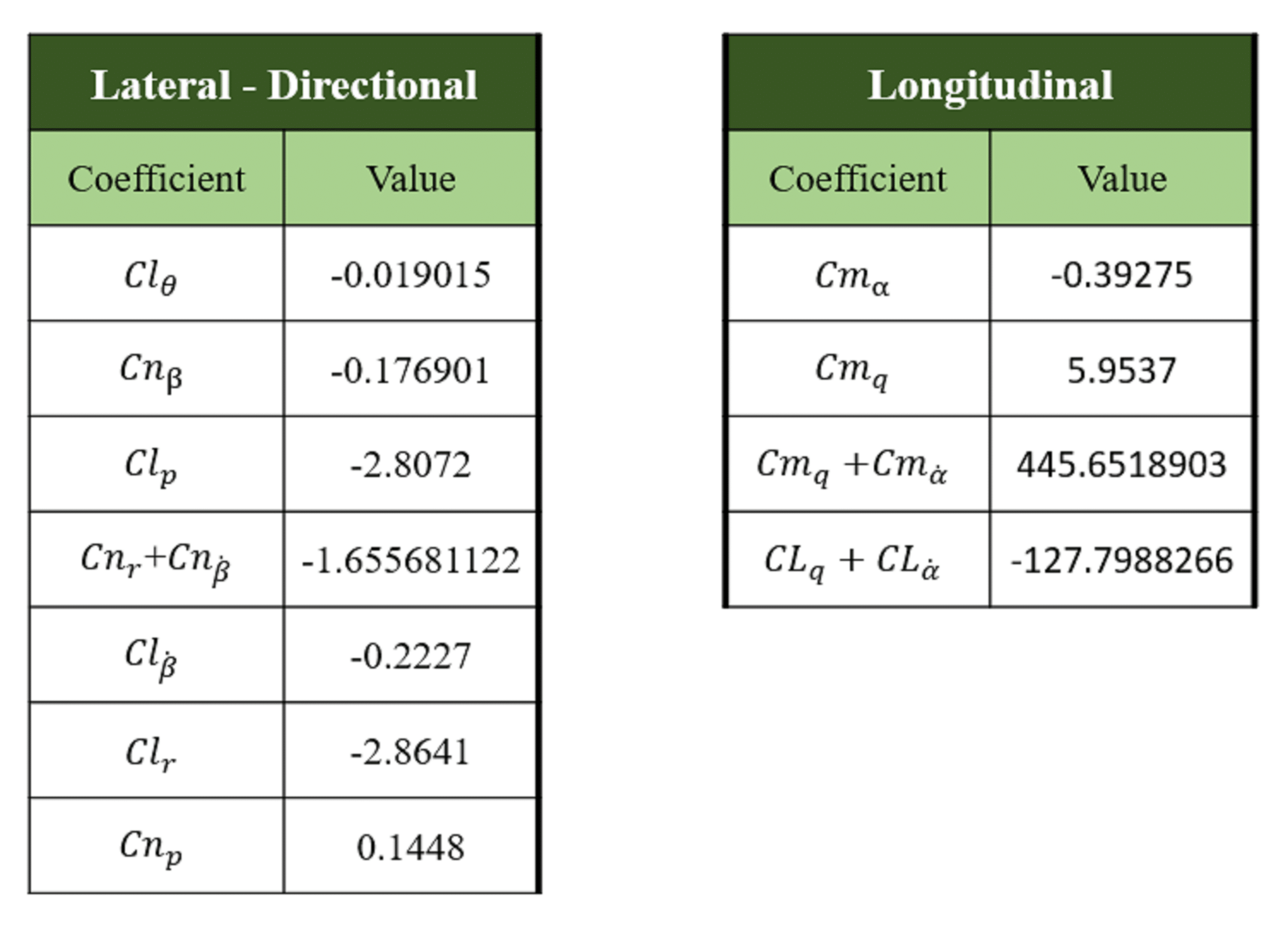 The determination of an UAV’s dynamic stability and control derivatives is vital for the development of accurate flight models and control system design. These coefficients, which relate aerodynamic moments to angular motion, are traditionally obtained through costly and time-consuming wind tunnel tests.