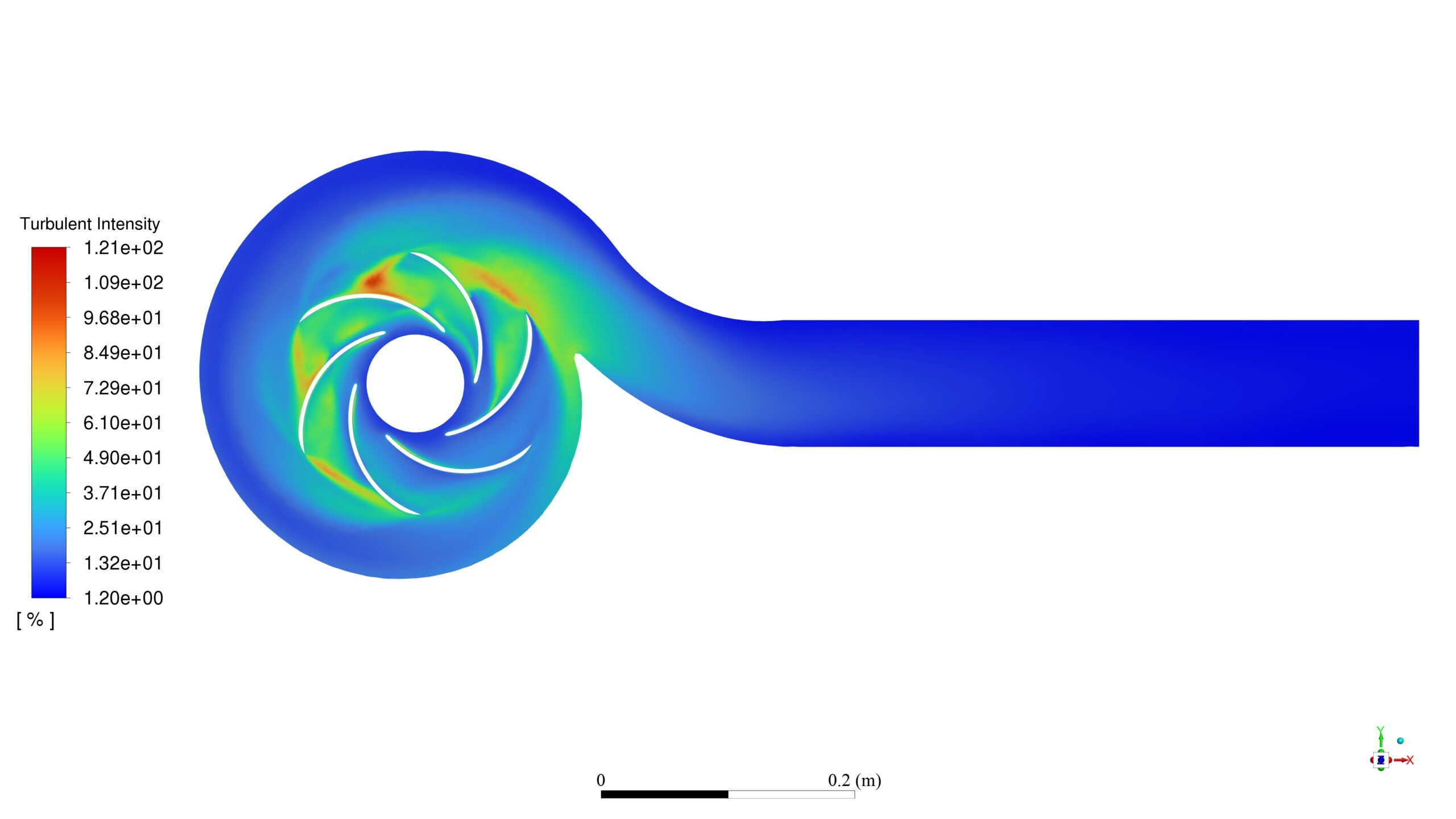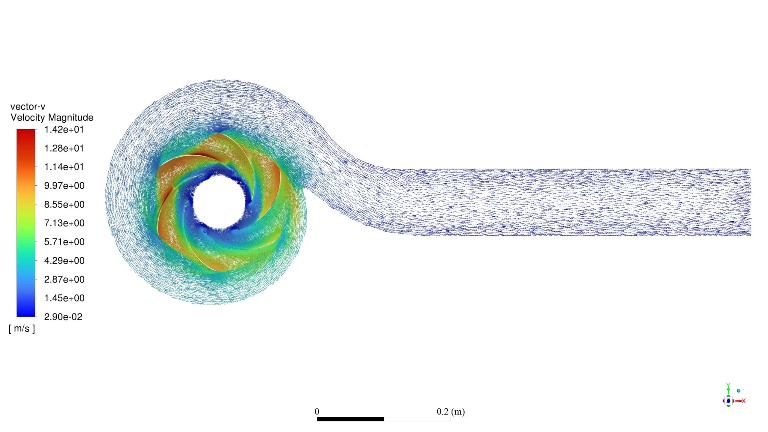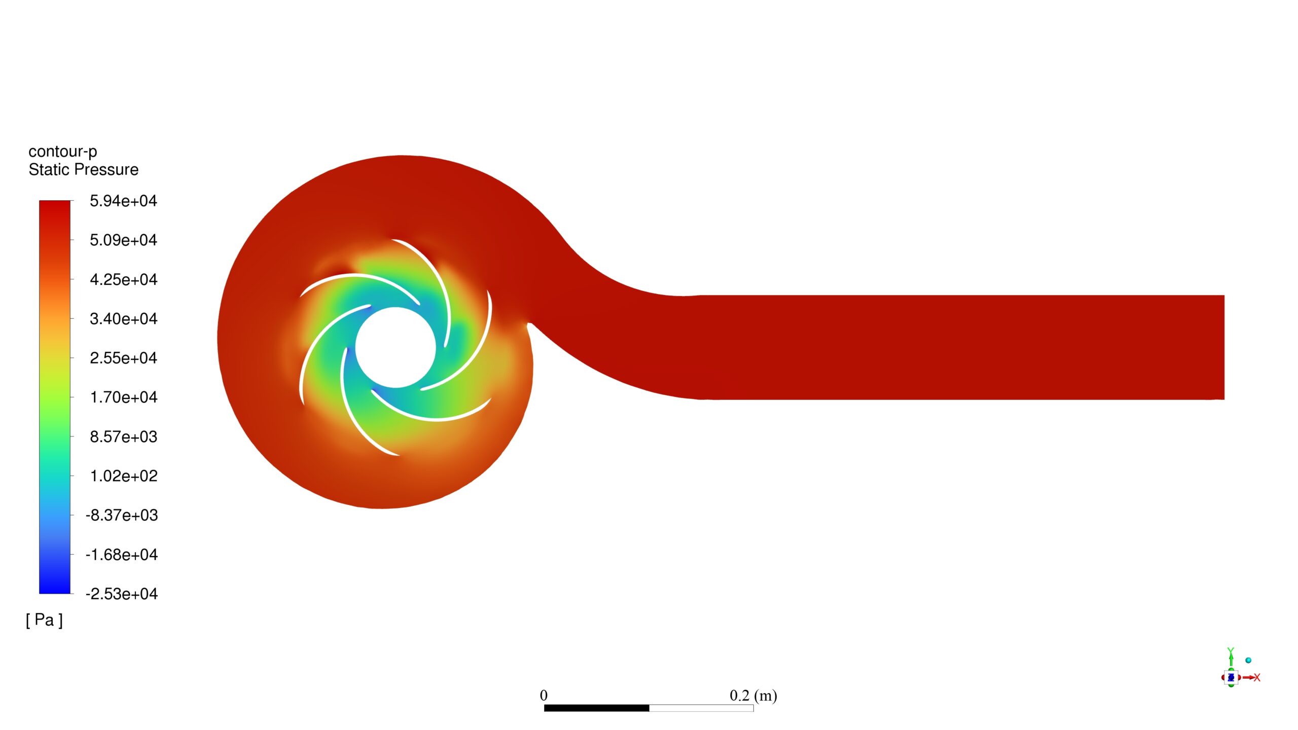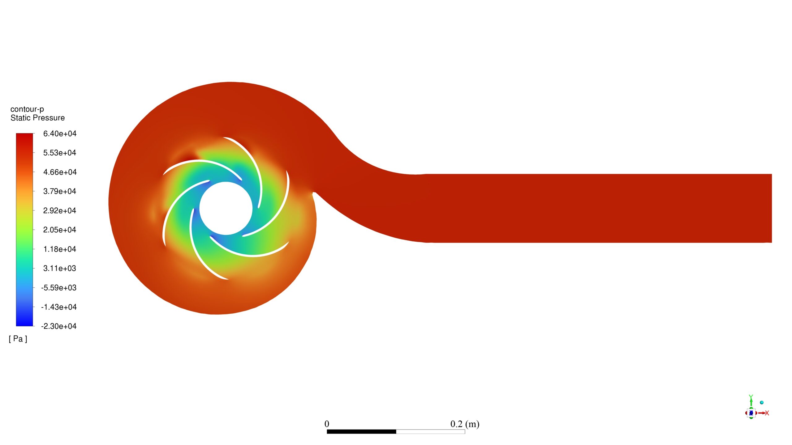 First, we simulated water flow using the SST k-w turbulence model to see the flow behavior through a centrifugal pump, the range of pressure drop, the velocity contour, and the other results, such as streamlines, shown in the results.