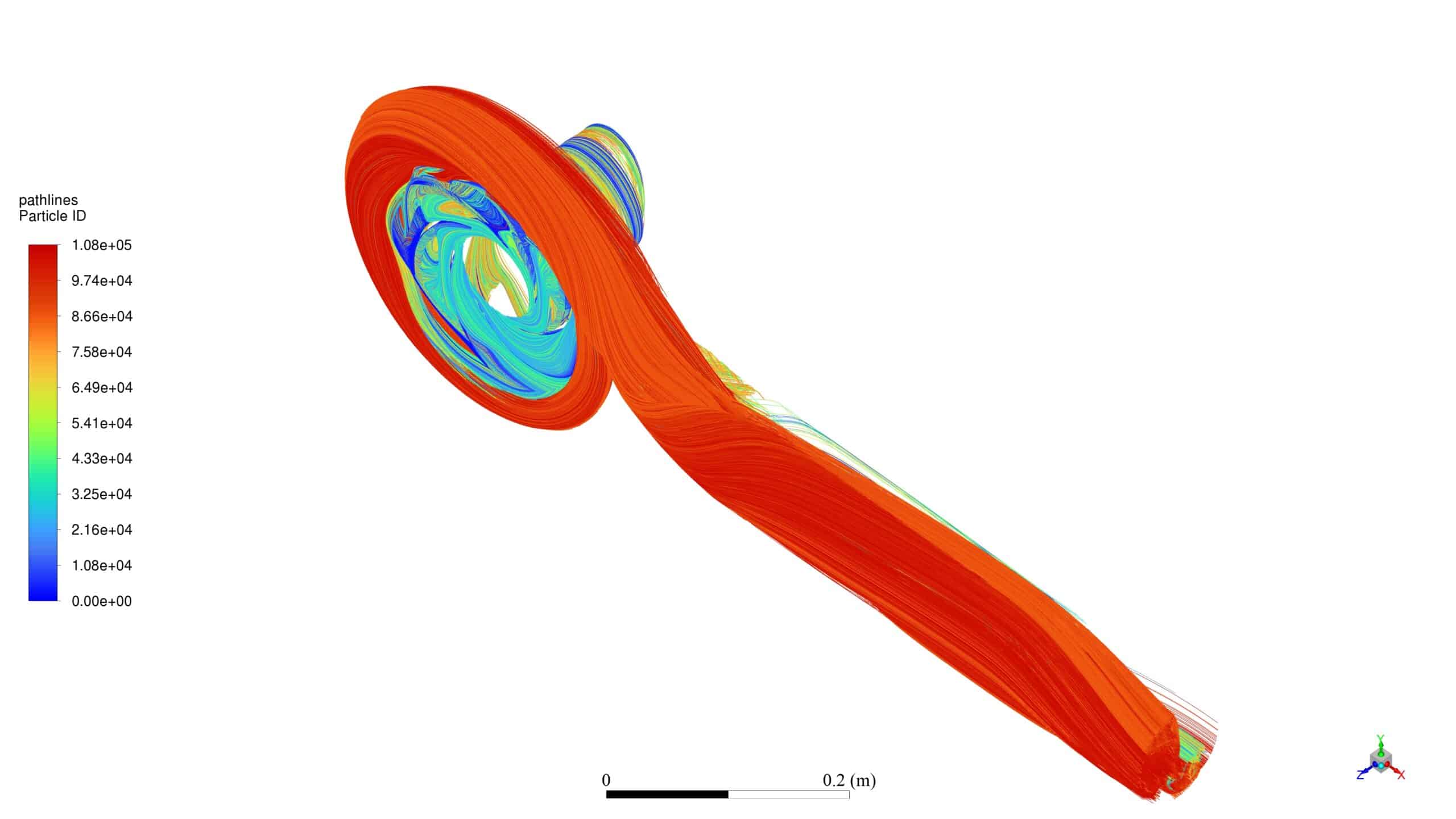 We solved the slurry in steady and unsteady particle treatment. The unsteady simulation aims to show the particle path lines. Also, we obtained an animation of the fluid flow in the pump to understand better particle injection, flowing, and rotating in the domain.
