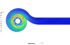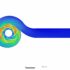 The contours show that the pressure increases radially; By increasing the pressure from the pump’s central part to the periphery. Also, due to the rotational motion of the blades in the central part, you can see the maximum speed in this part and the maximum value of the pressure difference or pressure gradient.