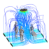 This simulation shows how smoke in such a room effect by air vortices in certain areas and gives us an understanding of the best places to place a couch or sofa.