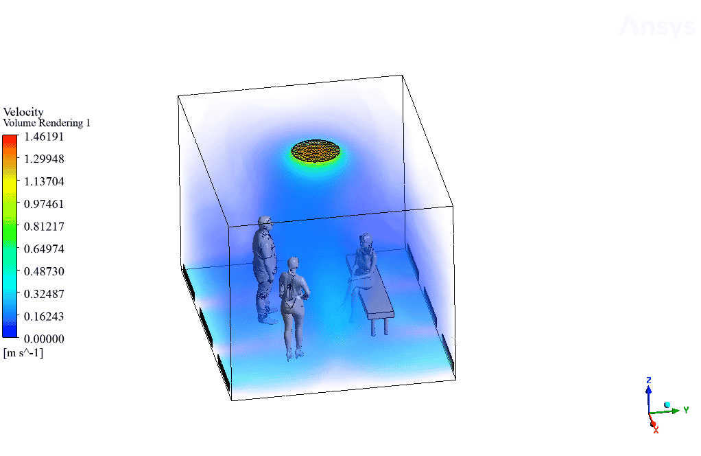 Thank you for your positive feedback on the simulation! To answer your question, reporting the time it takes for smoke to clear out would involve executing a transient analysis where we can record the dissipation of smoke particles over time after the smoking stops. This is certainly possible and would provide valuable insights into the room’s ventilation effectiveness.