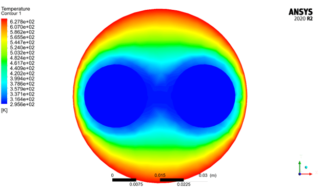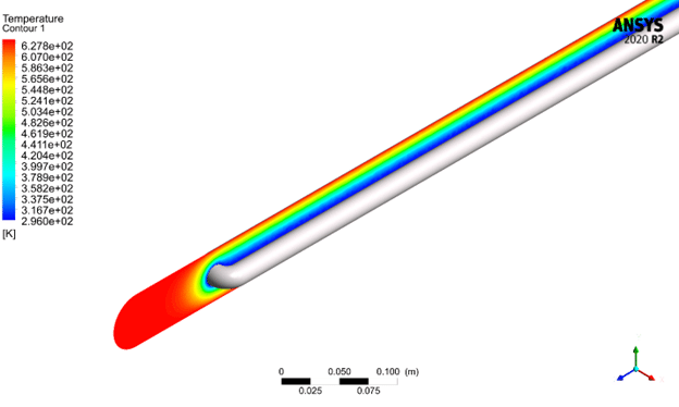 The results show that the water temperature increased from 295.15 Kelvin at the inlet to 296.92 Kelvin at the outlet, indicating effective heat absorption from the collector wall. Velocity contours showed faster flow in the center and slower near the walls, typical of internal turbulent flow. The temperature field confirmed that heat was transferred efficiently through the pipe, demonstrating the collector’s good thermal performance and confirming the accuracy of the simulation setup.