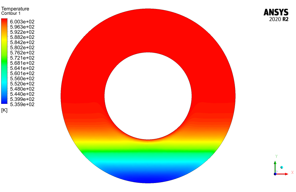 The PCM space’s inner wall is considered a wall with a temperature condition of 603.3 K and a thickness of 0.0015 m. The wall boundary condition with the Adiabatic condition is used for the outer wall of this space.