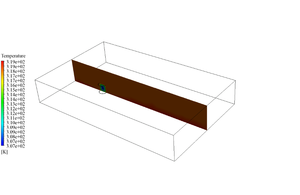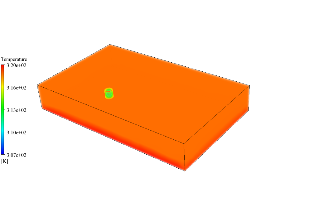 The present problem investigates the effect of solar radiation and a coating layer on a gasoline fuel tank. In this model, a fuel tank inside a computational zone contains airflow. The airflow with a velocity of 10 m/s and a temperature of 318.15 K enters the computational zone and collides with the tank.