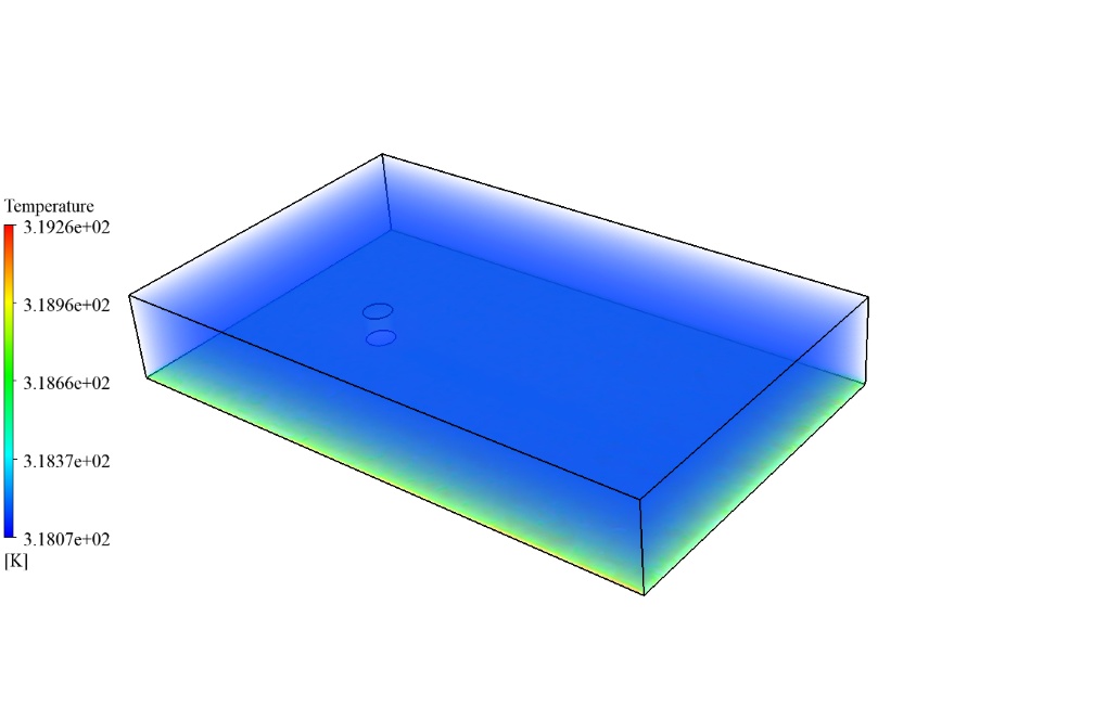 After simulation, we obtain 2D and 3D temperature contours in both cases, including a tank with and without a coating layer. We obtain these contours at the last second of the simulation process. As the contours show, the temperature changes differ in the two cases.