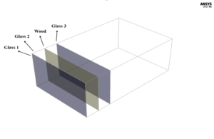 The present model is designed in three dimensions using Design Modeler software. The present model belongs to a room connected to space with a wooden partition as solar shading and a double glazing façade. The desired room has a depth of 6 m, a width of 5 m, and a height of 3 m. Also, the space between the glasses of the double glazing is equal to 2 mm.