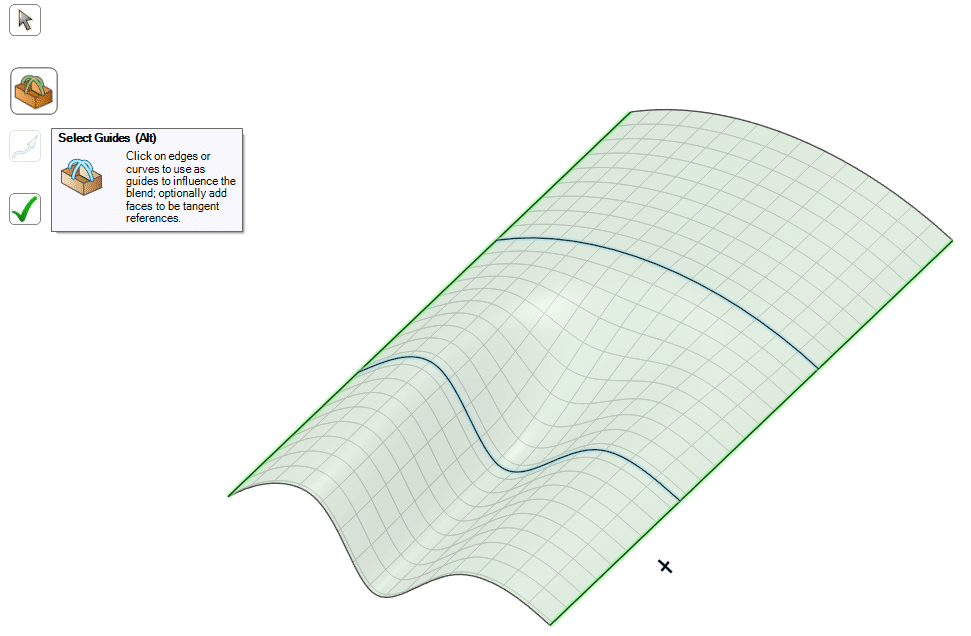 - Control the blend’s shape with Select Guides by choosing one or more guide curves for precise routing.