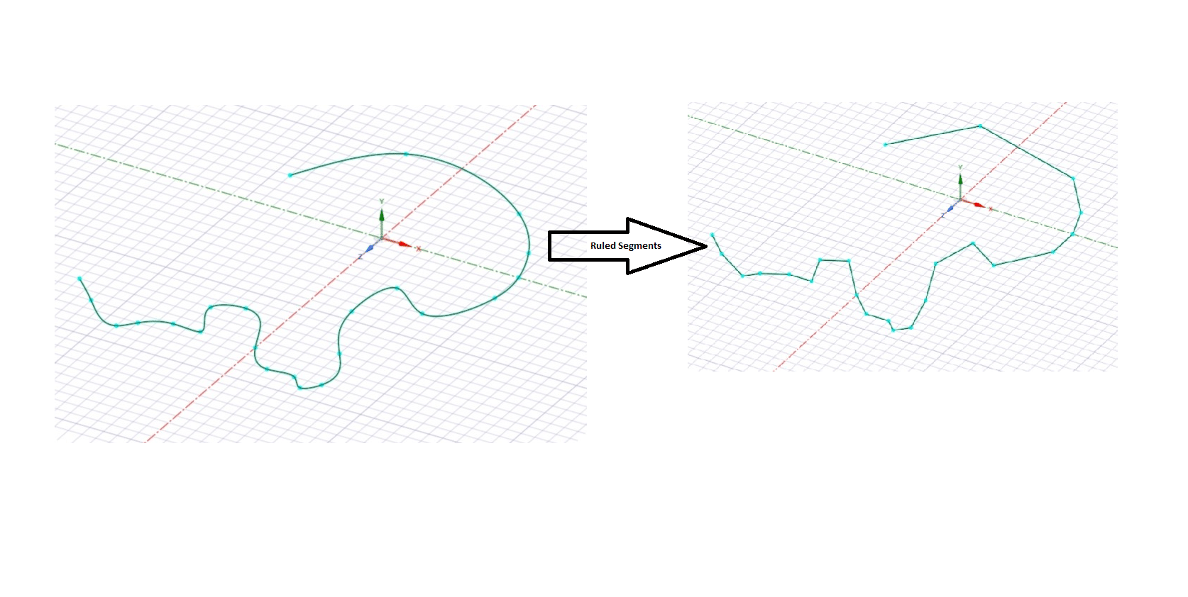 - Contrast the default smooth path with Ruled Segments, which converts connections to straight lines.