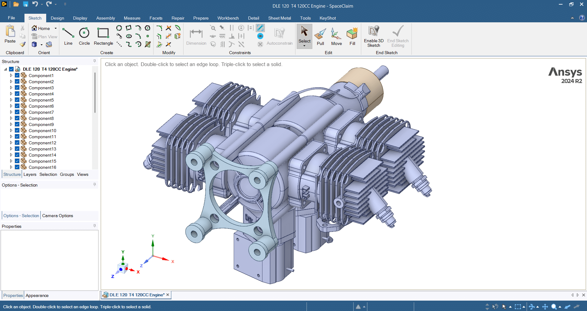 - Introduction to the Ribbon and the main structure of the SpaceClaim user interface.