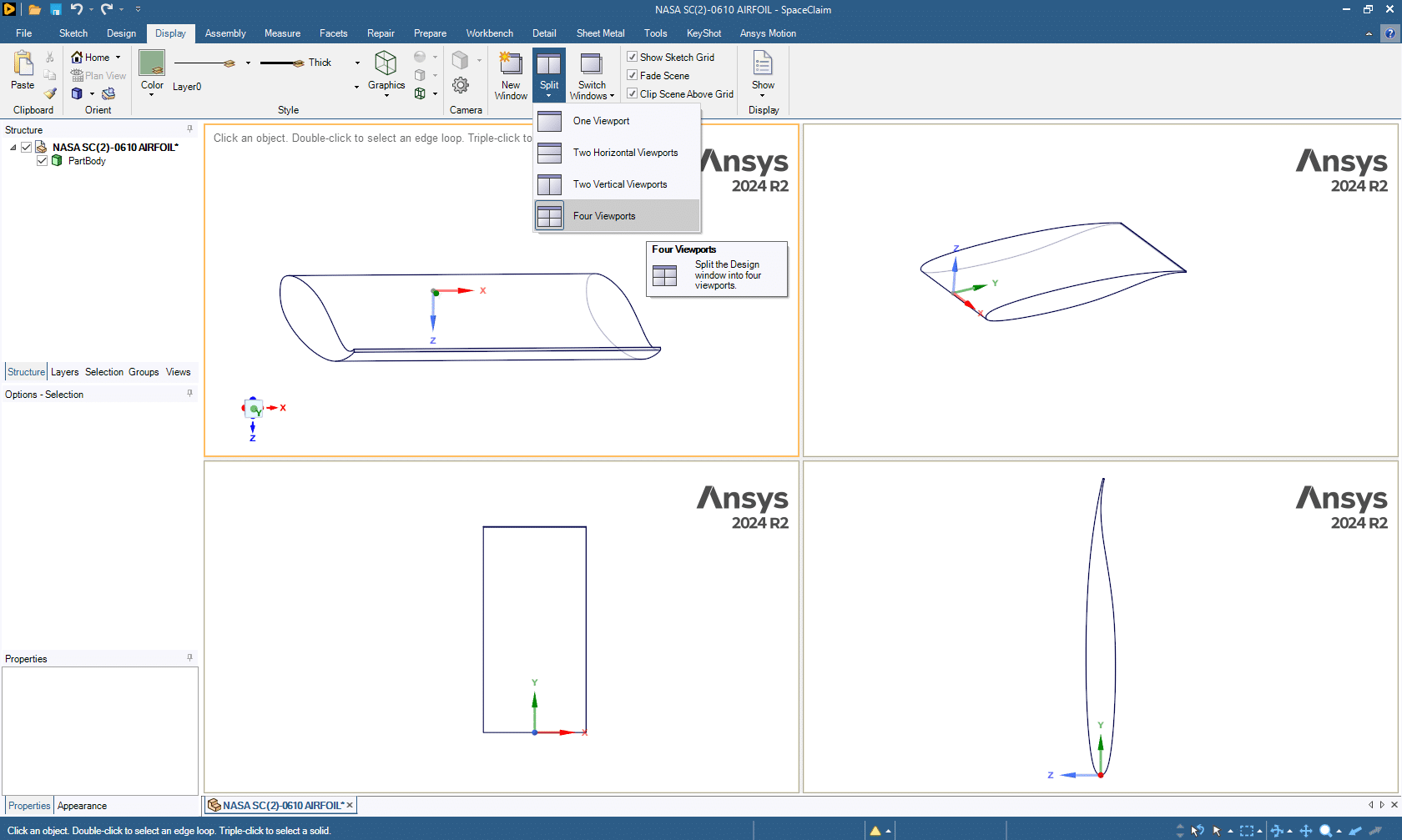 Additionally, the Split Viewports option allows the user to divide the display area into multiple simultaneous views: