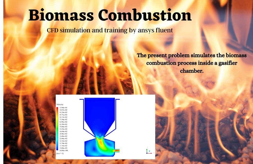 Project number 1 simulates the biomass combustion process inside a gasifier chamber. The material used for combustion is biomass, which reacts with the oxidizer. It is a biomass substance made from wheat straw that reacts with oxygen to produce synthetic gas as a healthy fuel. In the present model, fuel containing biomass and air enters the chamber from two separate inlets from the upper area. It creates a mass of materials, including ash and semi-combustible coal, in the lower part of the chamber.
