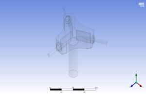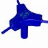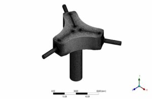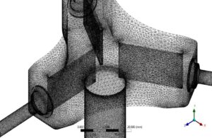 The designed geometry specifications include a gas splitter with three nozzles at the outlet. The inlet diameter of the mainstream is 1.6 cm, and the outlet nozzles’ diameter is 0.3 cm. In addition, 2.5 cm long fins are located inside the geometry as a filter (Figure below). (Design Modeler software)