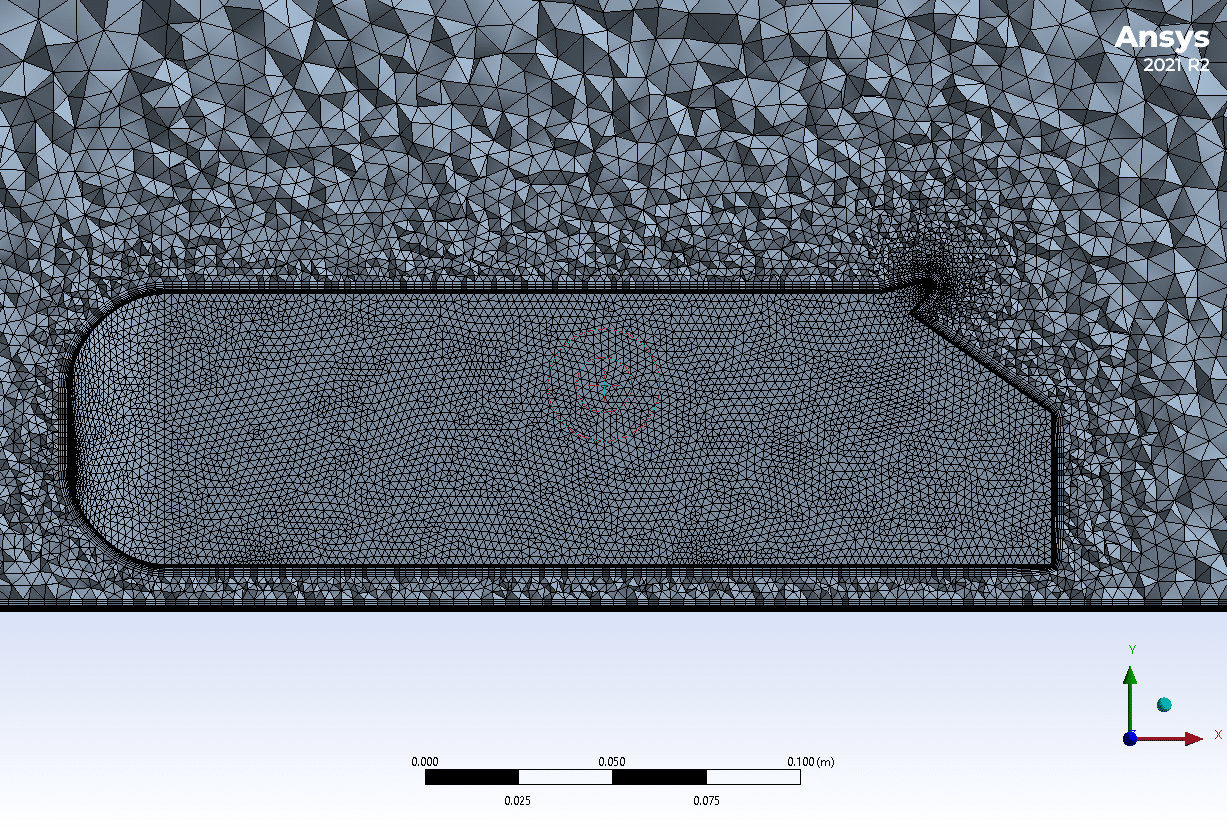 The model is designed in the Design Modeler software, and then the meshing is done by ANSYS Meshing software. That is in a fully Polyhedra grid type that results in a 935,500 element number.
