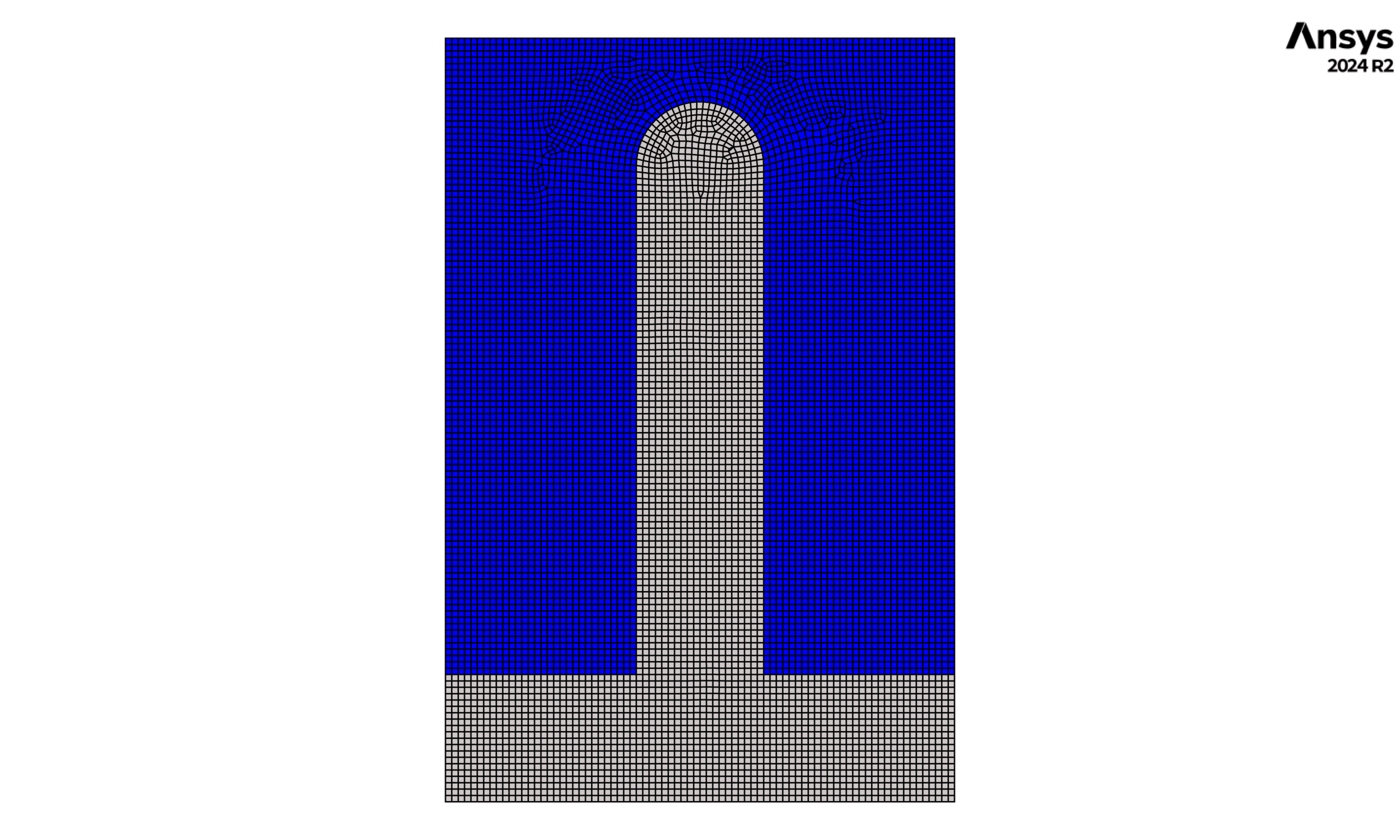 The simulation setup began with the creation of detailed geometry using SpaceClaim, followed by the generation of a high-quality quadrilateral mesh in ANSYS Meshing.