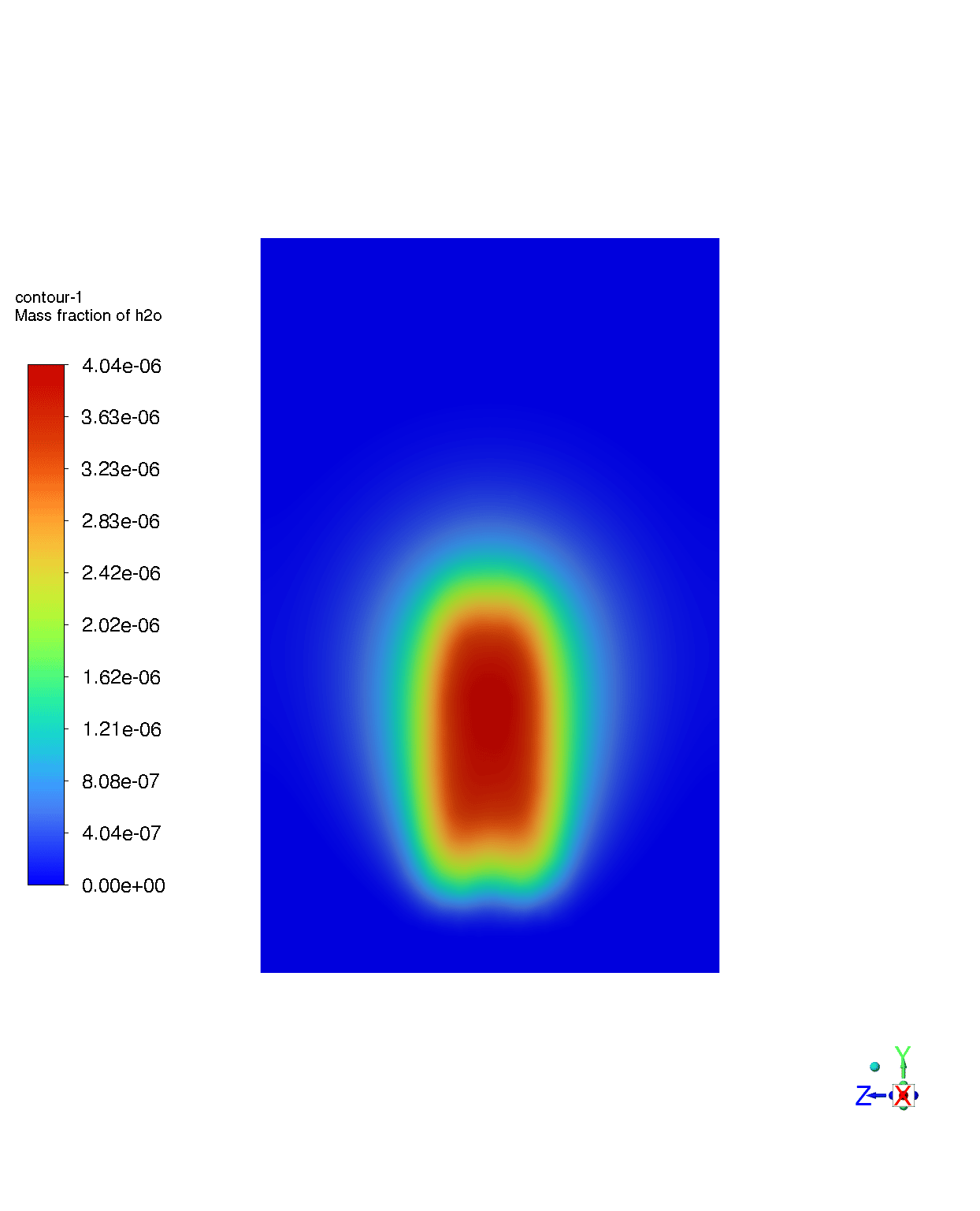 As mentioned in the previous section, the injection starts with a 1.25 m/s velocity. Due to consecutive collisions of the droplets, some of them break up and some of them join each other (accumulation). It is crystal clear in diameter distribution contour as shown below. Although the initial diameter is 2mm, the range is between 0.002mm and 7mm.