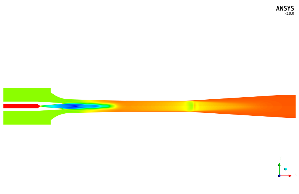 Thank you for your positive feedback! In the simulation, the mixing process of the primary and secondary fluids is visualized using detailed velocity and Mach number contours. These contours show how the streams interact and combine along the length of the ejector, providing a comprehensive understanding of the mixing dynamics. Additionally, pressure contours help visualize the behavior of the fluids, especially where the vacuum is created and the suction effect occurs.