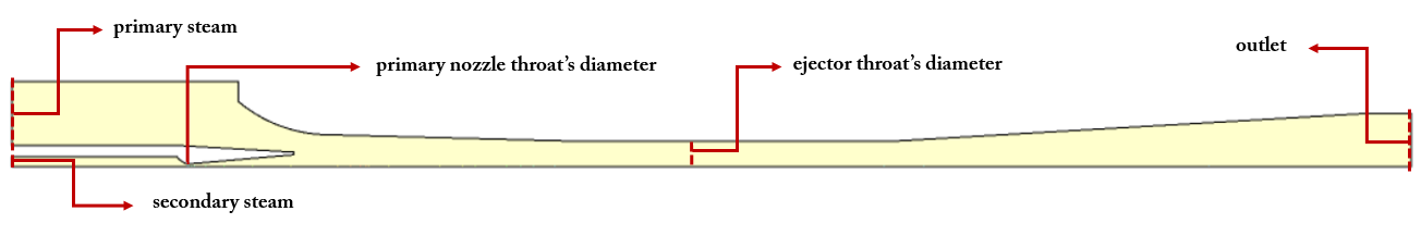 The steam ejector is a mechanical device that uses a primary (motive) fluid to suck up a secondary fluid (gas, liquid, or solid particles). Eventually, the ejector mix the two primary and secondary fluids and they exit from the outlet. Ejectors have two major tasks, including creating vacuum and gas suction and fluid mixing.